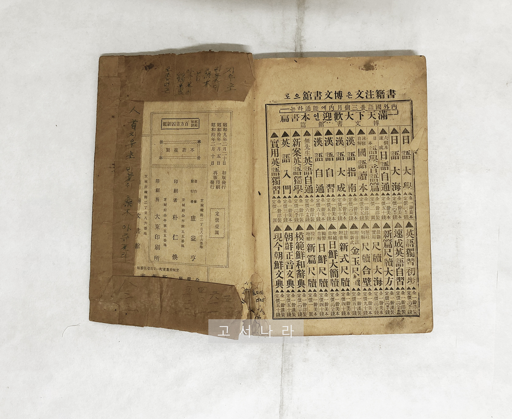 *고서나라에서 판매하는 고서는 원형복원하여 판매합니다.